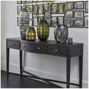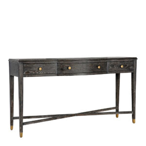 Gracias a sus espaciosos cajones y su gran tablero, la consola INES ofrece mucho espacio de almacenamiento para todas sus pertenencias cotidianas. Sus curvas trabajadas y sus elegantes detalles le confieren un estilo refinado y encantador.