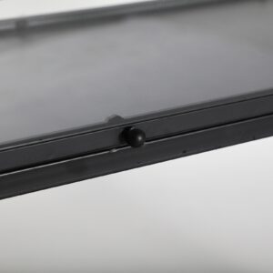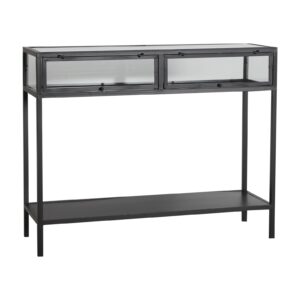 Consola kilrea, en color negro, de estilo industrial. Fabricado en hierro, combinado con vidrio.