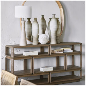 Déjate sorprender por el diseño original de la consola MATEO. Su estructura te permitirá exponer todos tus objetos decorativos o guardar tus libros más bonitos.