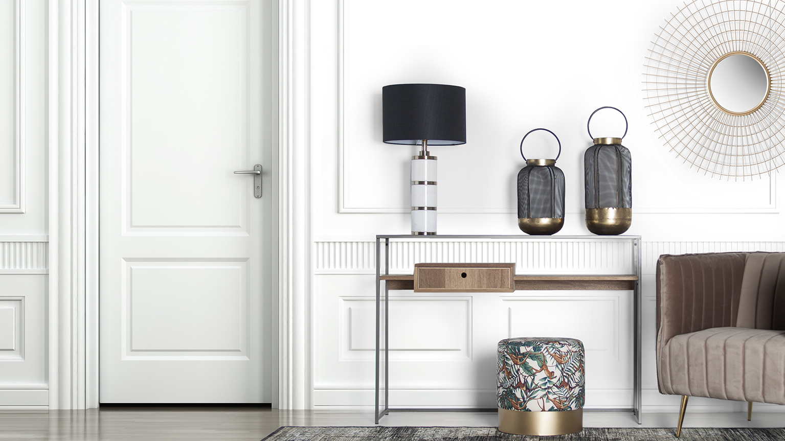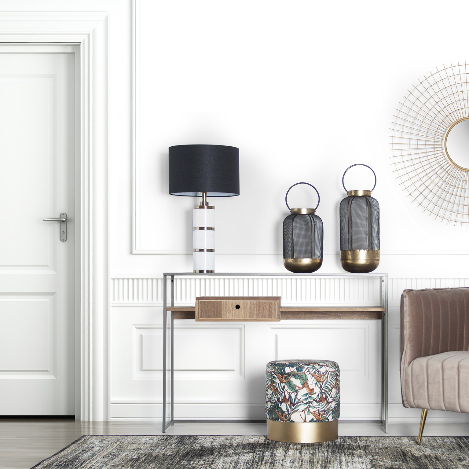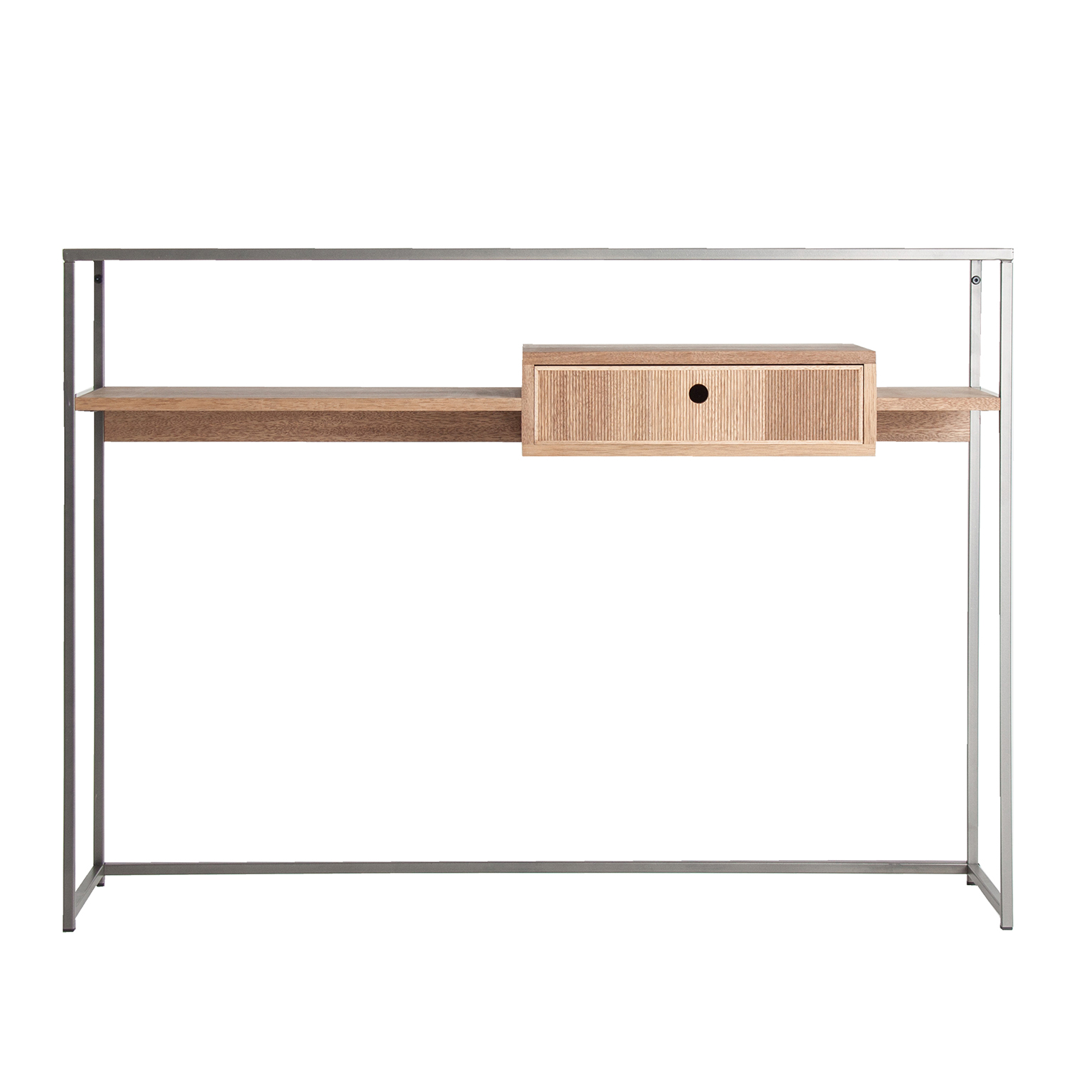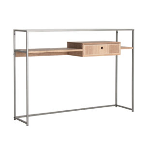 CONSOLA VONITSA, EN COLOR NATURAL, DE ESTILO INDUSTRIAL. FABRICADO EN MADERA DE PINO, COMBINADO CON HIERRO. PRODUCTO DESMONTABLE.