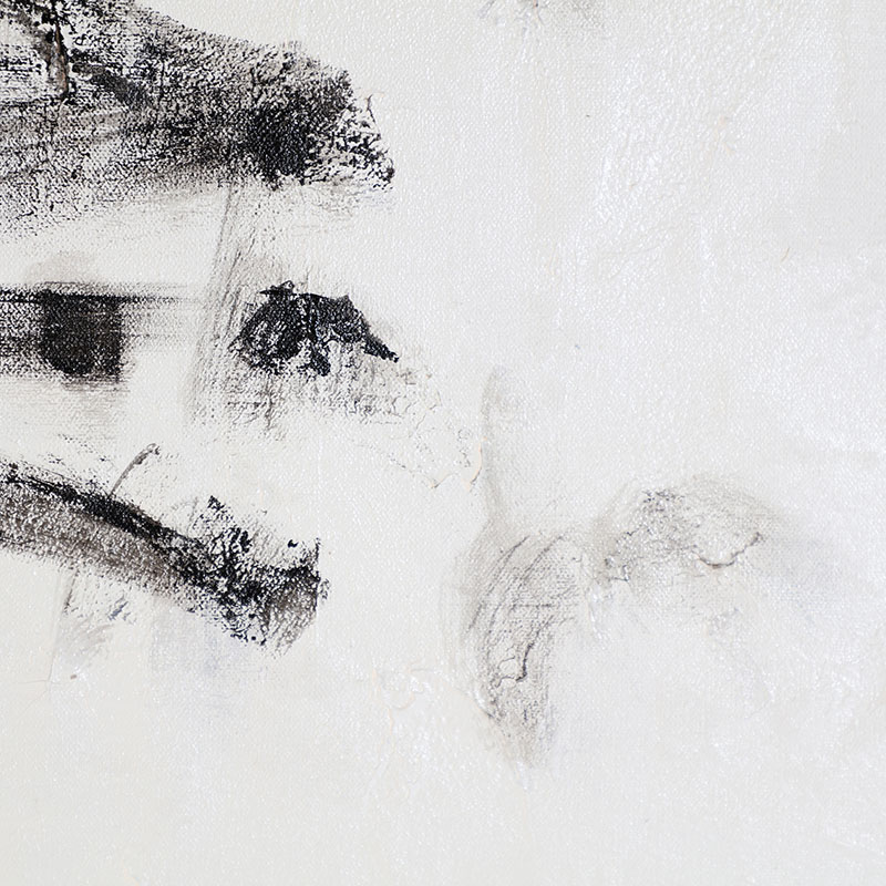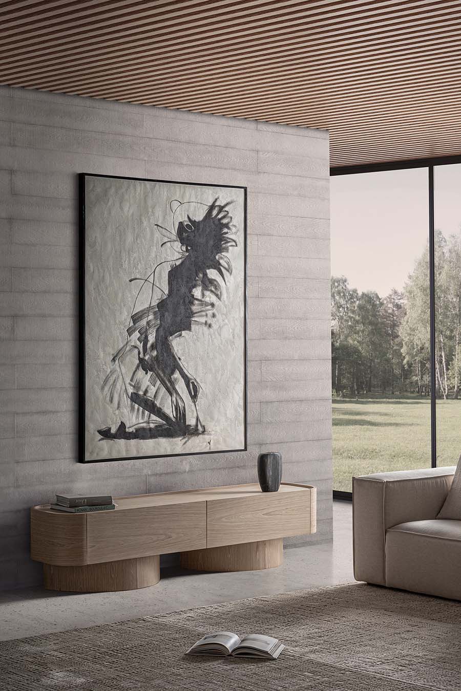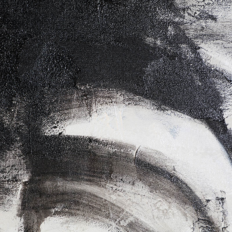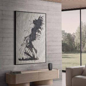 Cuadro Armstrong de estilo art deco fabricado en lienzo en color blanco con acabado artesanal combinado con madera de pino en color negro.