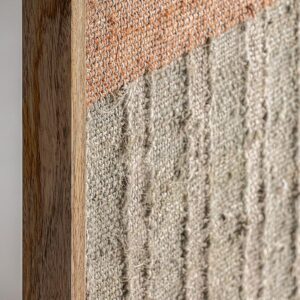 Cuadro brahma de estilo boho fabricado en madera de mango en color tonos en marrón con acabado artesanal combinado con algodón y cáñamo.