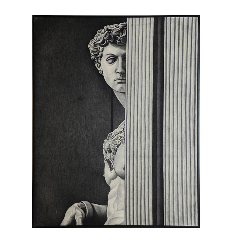 Cuadro Daniel de estilo provenzal fabricado en lienzo en color tonos oscuros con acabado artesanal combinado con madera de pino en color negro.