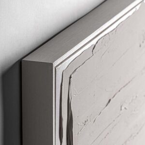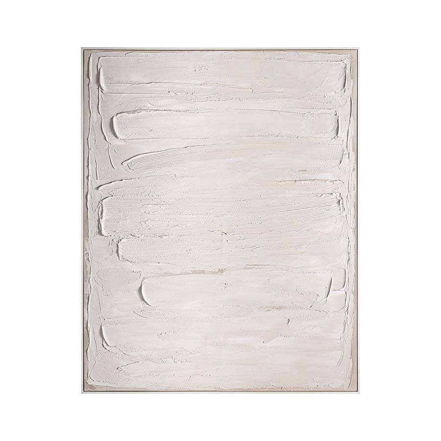 Cuadro Egil de estilo contemporáneo fabricado en lienzo en color blanco roto con acabado artesanal combinado con madera de pino en color blanco.