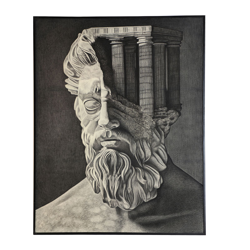 Cuadro Juan de estilo provenzal fabricado en lienzo en color tonos oscuros con acabado artesanal combinado con madera de pino en color negro.