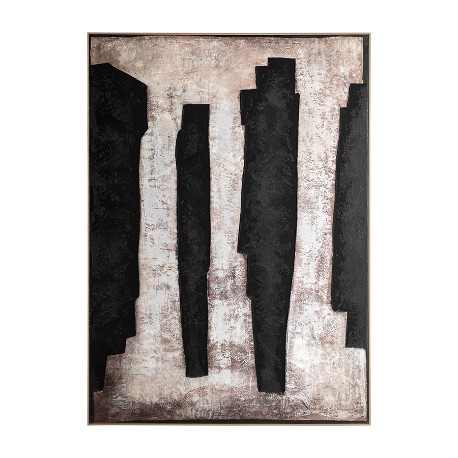 Cuadro Kurt de estilo contemporáneo fabricado en lienzo en color tonos neutros combinado con madera de pino en color marrón.