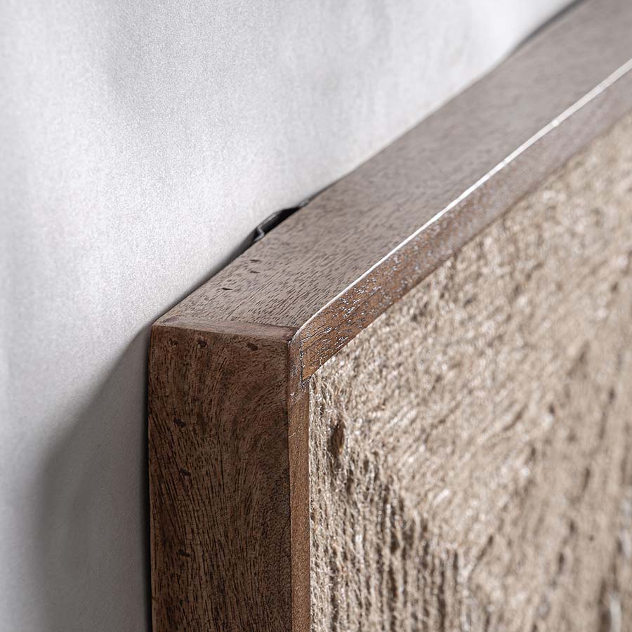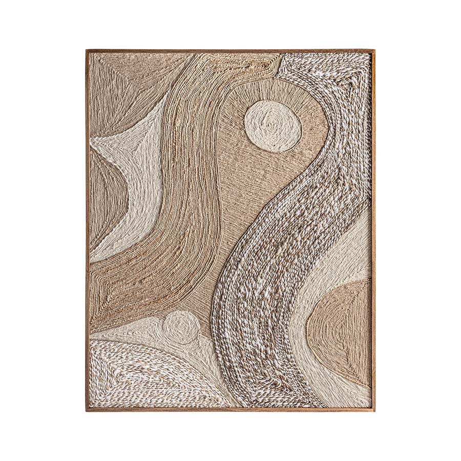 Cuadro Zeus de estilo boho fabricado en madera de mango en color marrón claro combinado con cáñamo en color beige y yute en color tonos neutros.