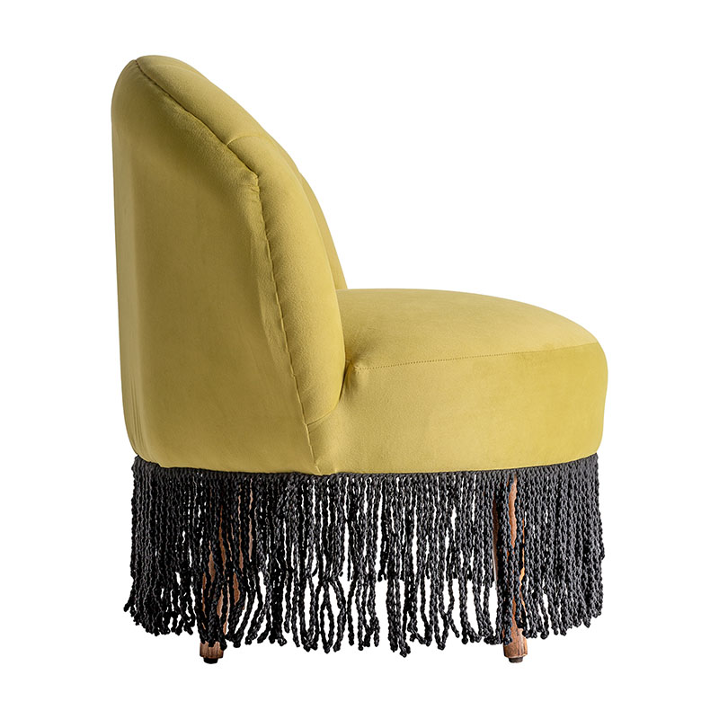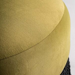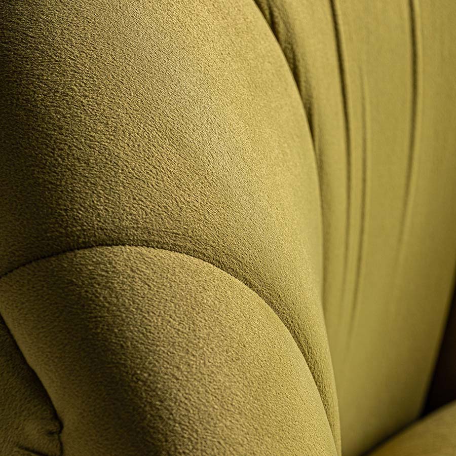 Descalzador glace de estilo vintage fabricado en terciopelo en color pistacho combinado con madera de pino y espuma.