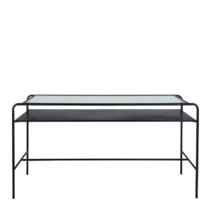 Escritorio Blesa de estilo industrial fabricado en hierro en color negro combinado con madera dm en color natural y vidrio.