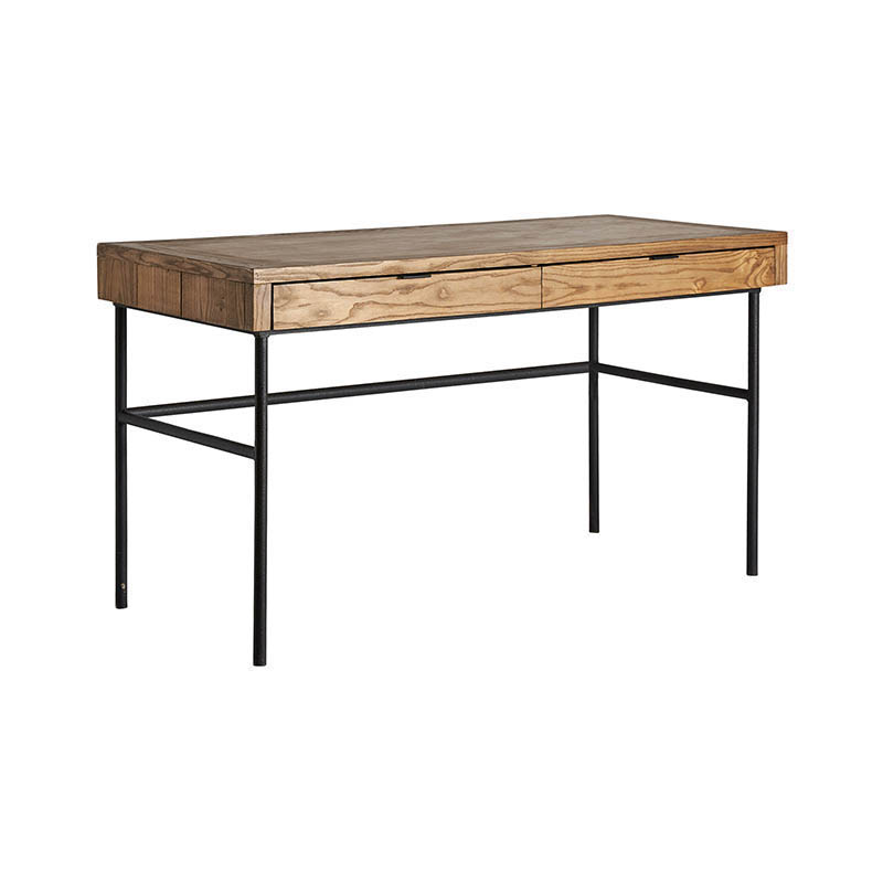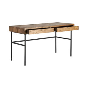 Escritorio nuapa de estilo industrial fabricado en madera de olmo en color negro combinado con hierro en color natural. Producto desmontable.