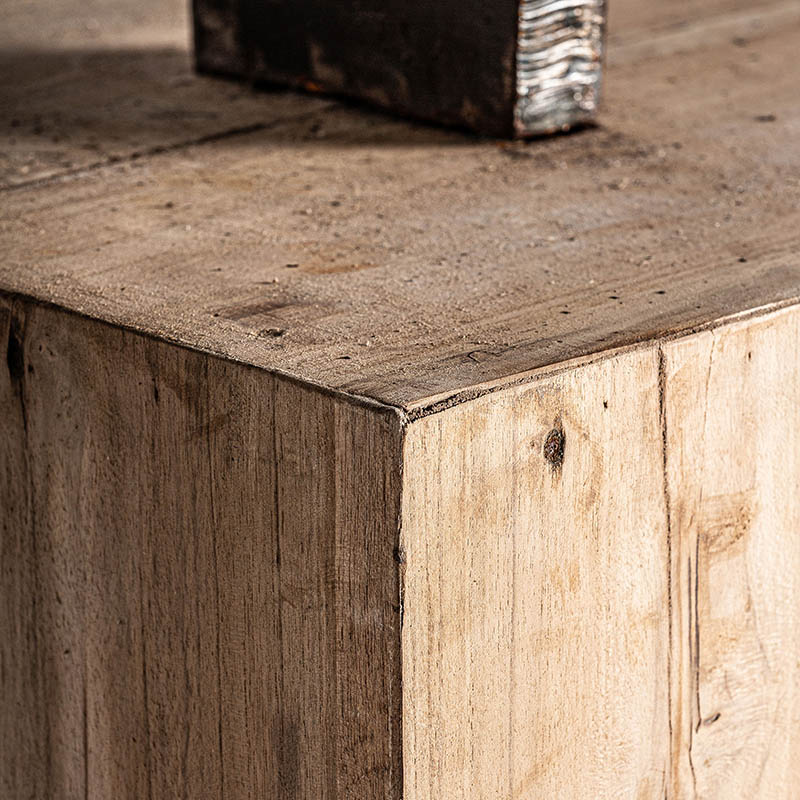 Escultura de estilo étnico fabricado en madera tropical en color negro con acabado envejecido combinado con hierro en color natural.