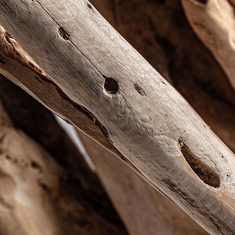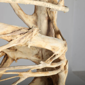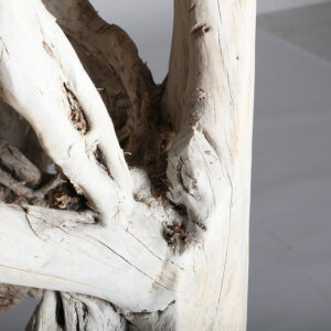 Escultura de estilo étnico fabricado en madera tropical en color blanco roto con acabado envejecido.