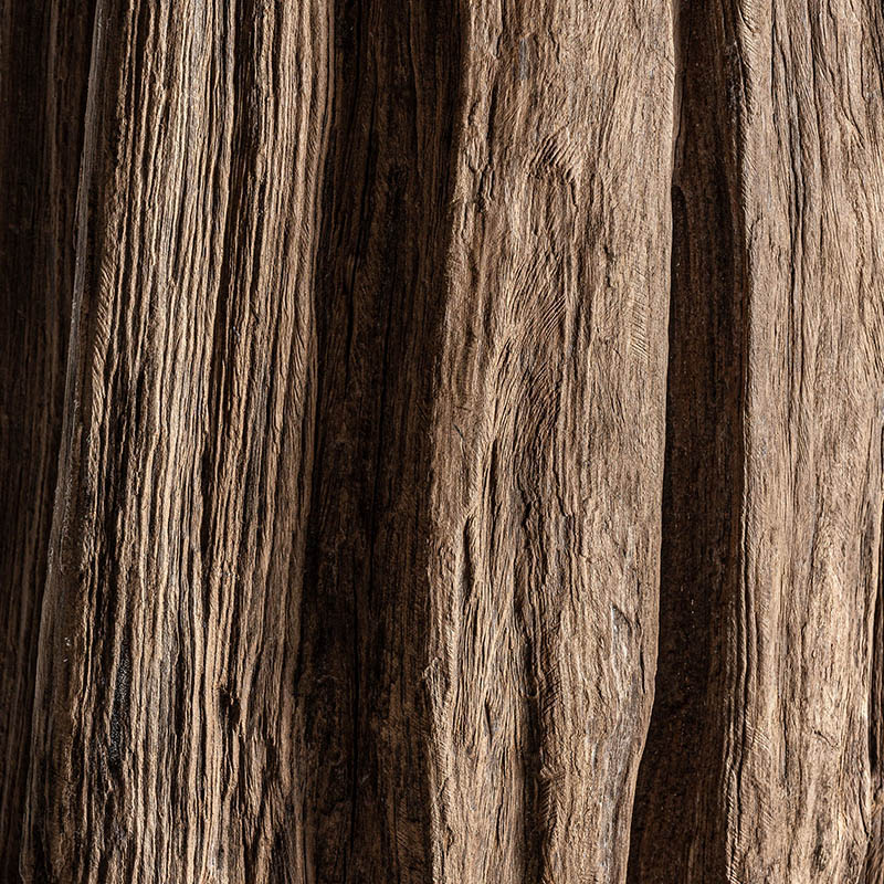 Escultura de estilo étnico fabricado en madera tropical en color marrón con acabado envejecido.