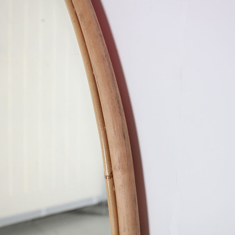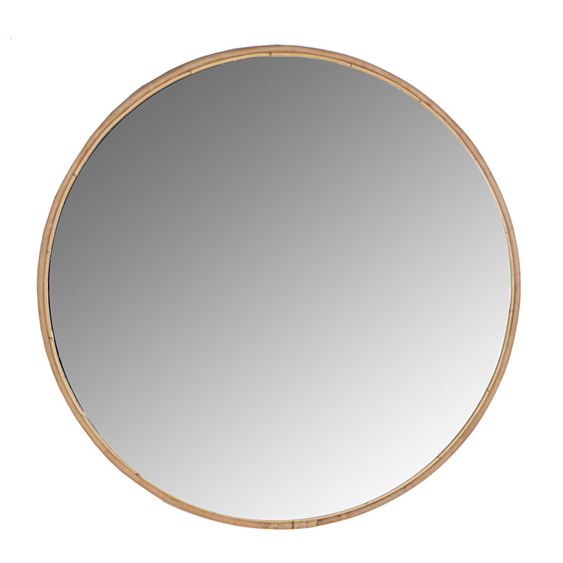 Espejo redondo de estilo contemporáneo, fabricado en bambú en color marrón, combinado con espejo.