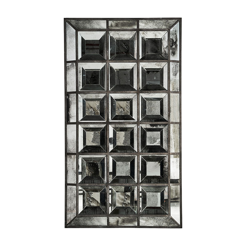 Espejo biel de estilo contemporáneo, fabricado en espejo en color gris con acabado envejecido, combinado con madera en color gris.