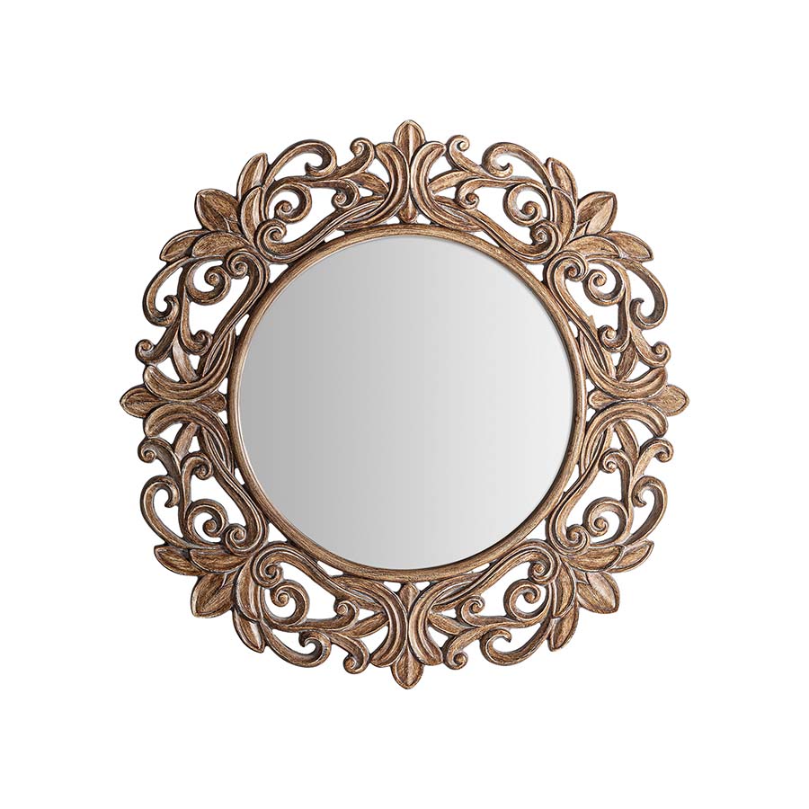 Espejo Blahe de estilo clásico fabricado en resina en color marrón combinado con espejo.