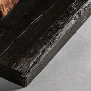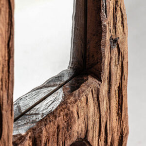 Espejo de pie pokuru de estilo étnico fabricado en madera de teka en color marrón con acabado envejecido combinado con espejo.