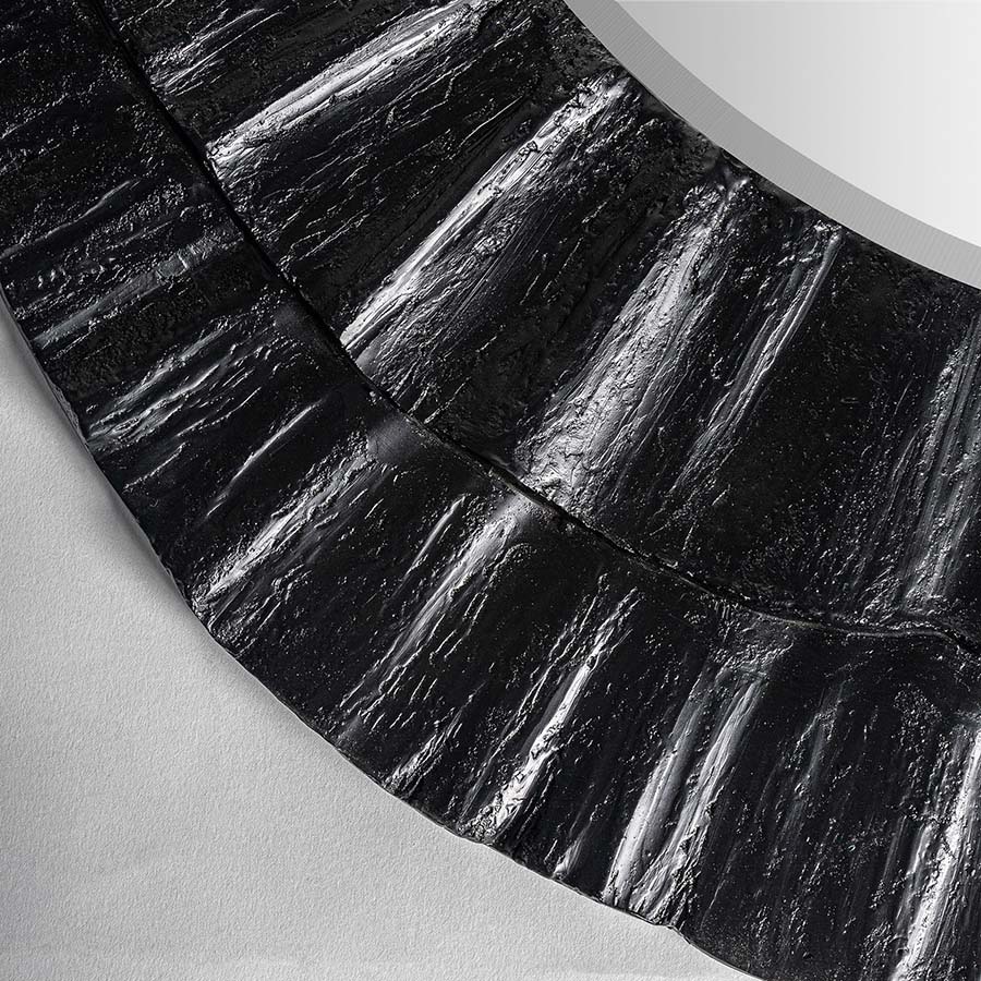 Espejo Falhe de estilo contemporáneo fabricado en resina en color negro combinado con espejo y hierro.