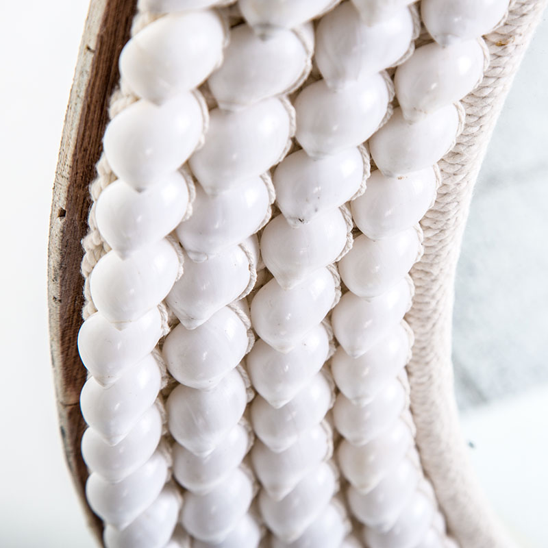 Espejo Glashe de estilo nórdico fabricado en cuerda en color blanco combinado con concha en color blanco y espejo.