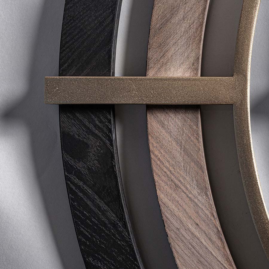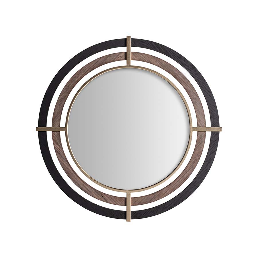 Espejo hadriel de estilo art deco fabricado en madera dm en color negro combinado con hierro en color oro y espejo.