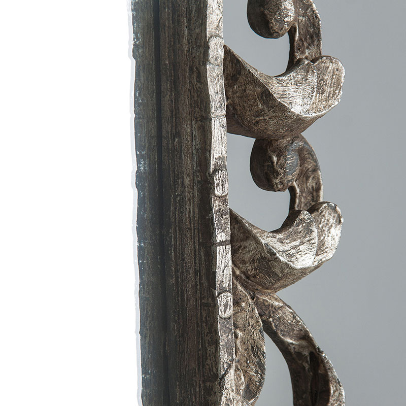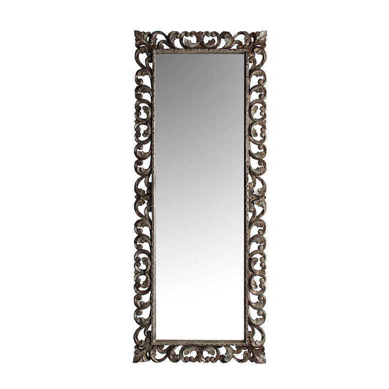 Espejo realp, en color plata envejecido, de estilo colonial. Fabricado en madera tropical, combinado con espejo.