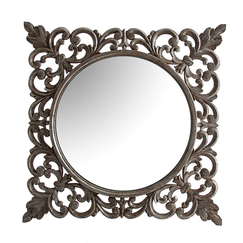 Espejo realp, en color plata envejecido, de estilo colonial. Fabricado en madera tropical, combinado con espejo.