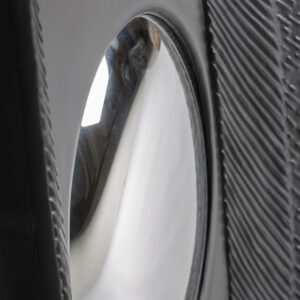 Espejo riley de estilo contemporáneo fabricado en resina en color negro combinado con espejo y hierro.