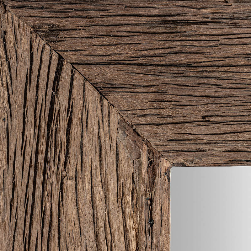 Espejo rectangular samsun de estilo étnico fabricado en madera de pino reciclado en color marrón con acabado envejecido combinado con espejo. Varias maderas: pino mango teka acacia.