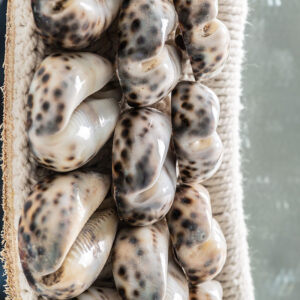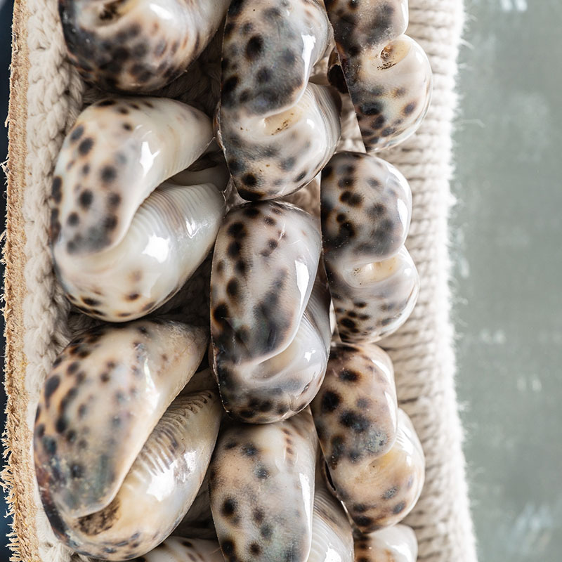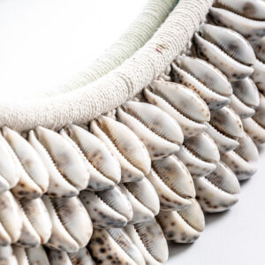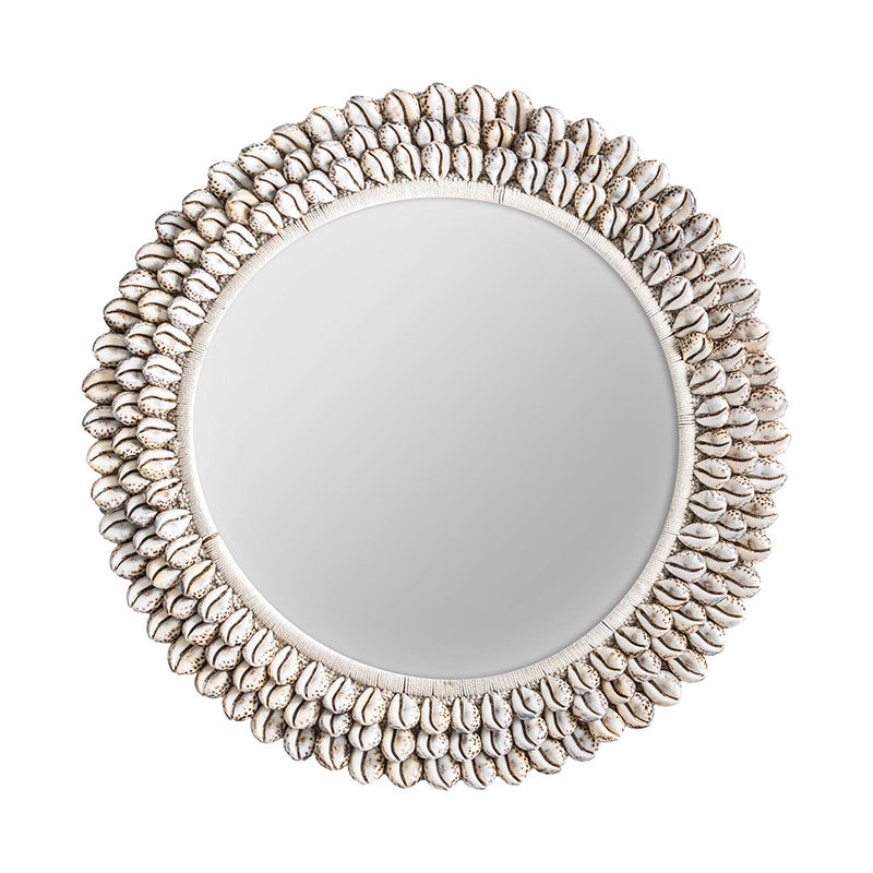 Espejo tholy de estilo nórdico fabricado en concha en color blanco roto combinado con espejo.