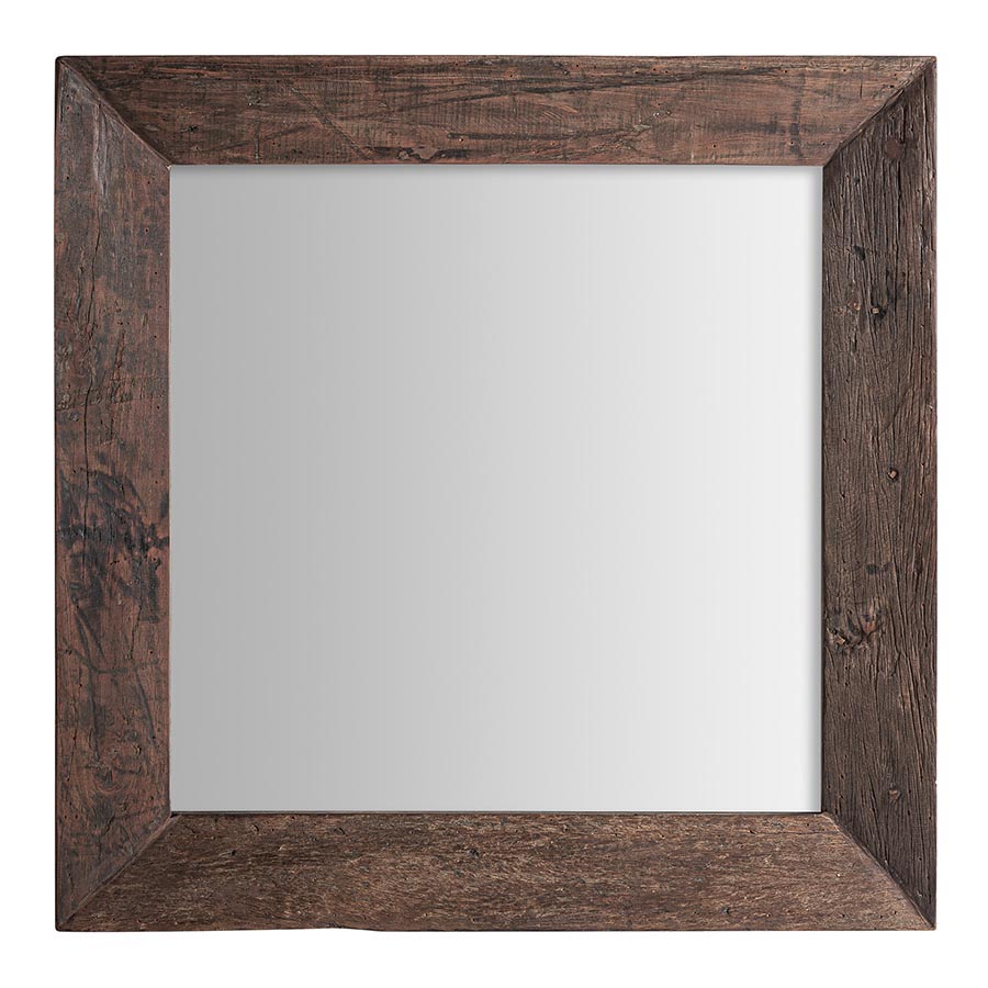 Espejo fabricado en madera de pino reciclado en color marrón combinado con espejo.