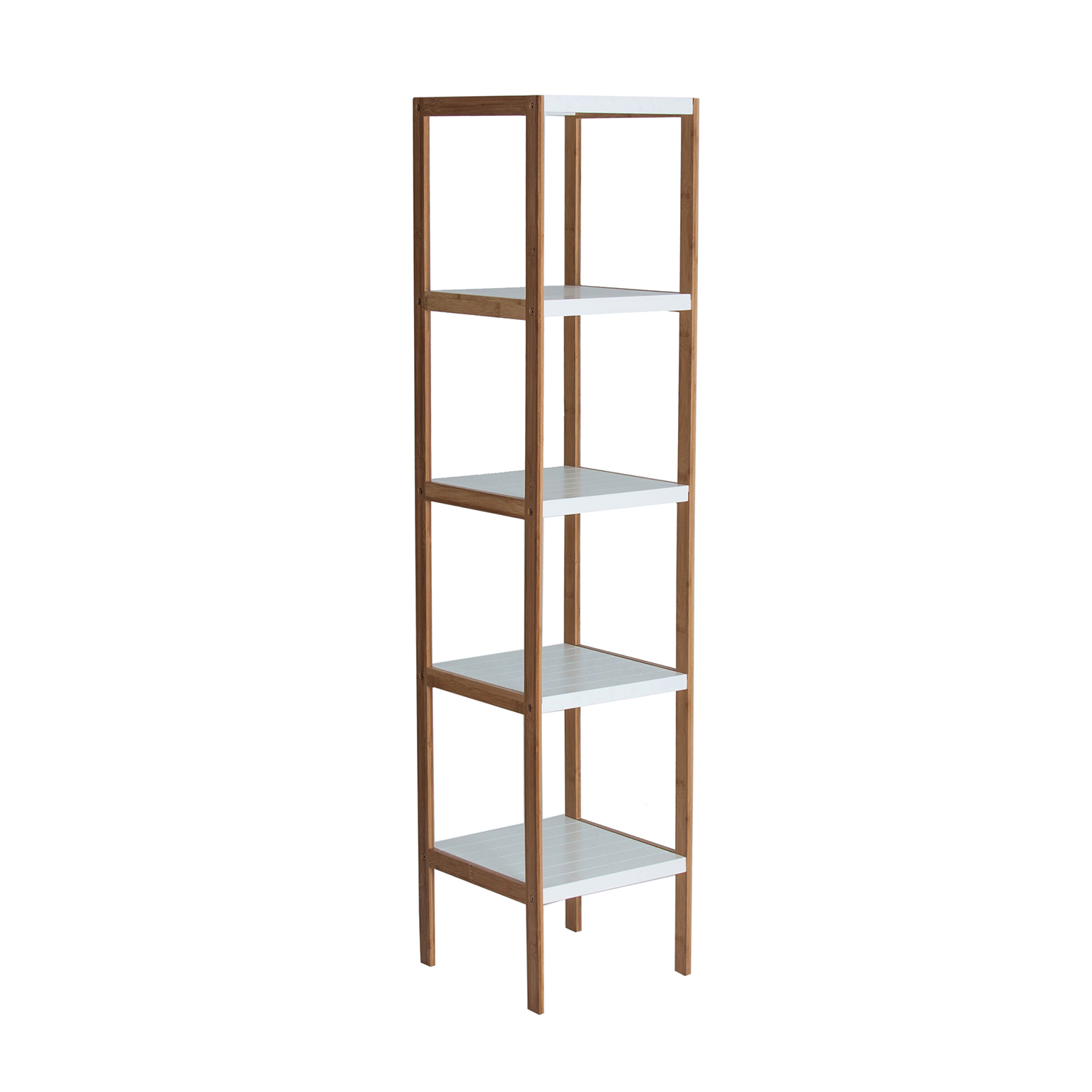 ESTANTERIA BAUNEI, EN COLOR NATURAL/BLANCO, DE ESTILO COLONIAL. FABRICADO EN BAMBÚ, COMBINADO CON DM. 5 ESTANTES. PRODUCTO DESMONTABLE.