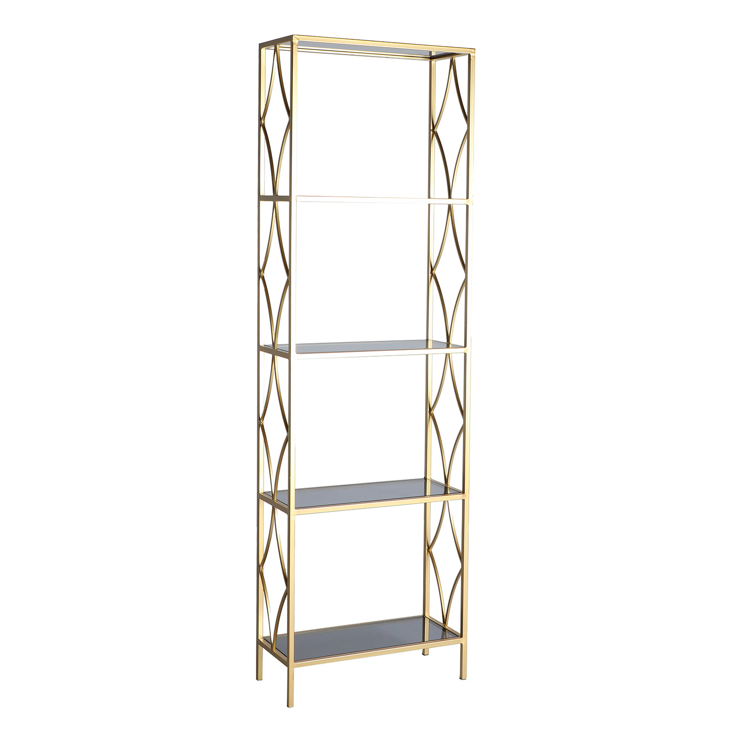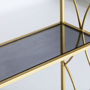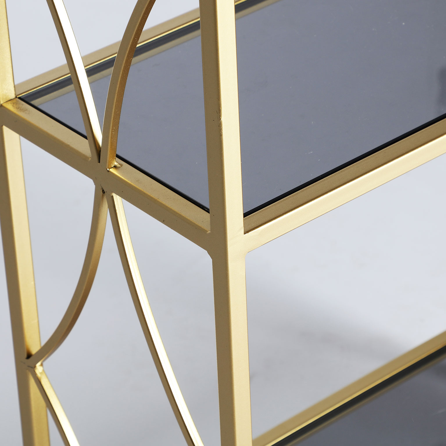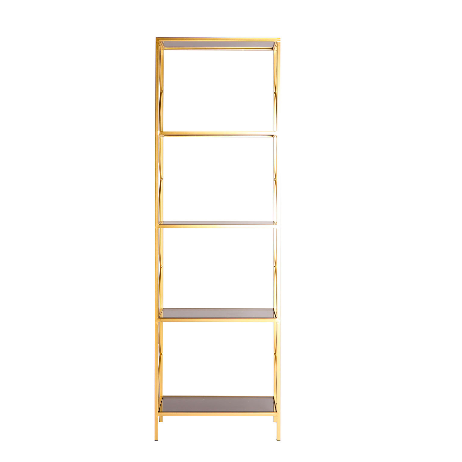 ESTANTERIA BELITSA, EN COLOR ORO, DE ESTILO ART DECO. FABRICADO EN HIERRO, COMBINADO CON CRISTAL. PRODUCTO DESMONTABLE.