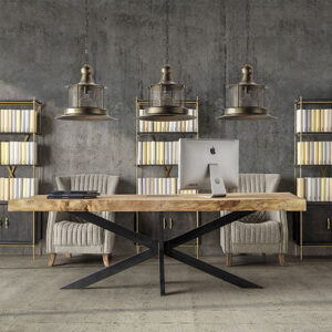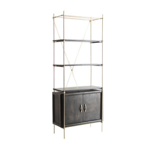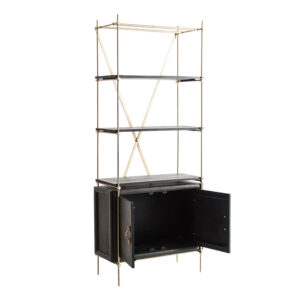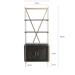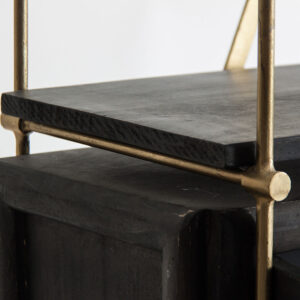 Estanteria danta de estilo contemporáneo fabricado en hierro en color marrón combinado con madera de olmo en color oro. Producto desmontable.