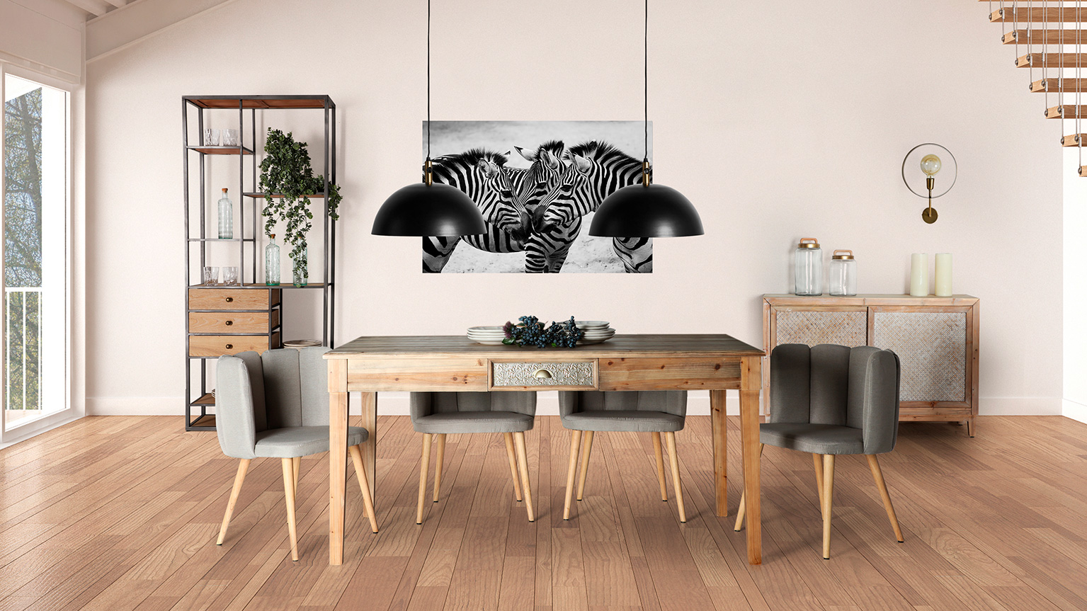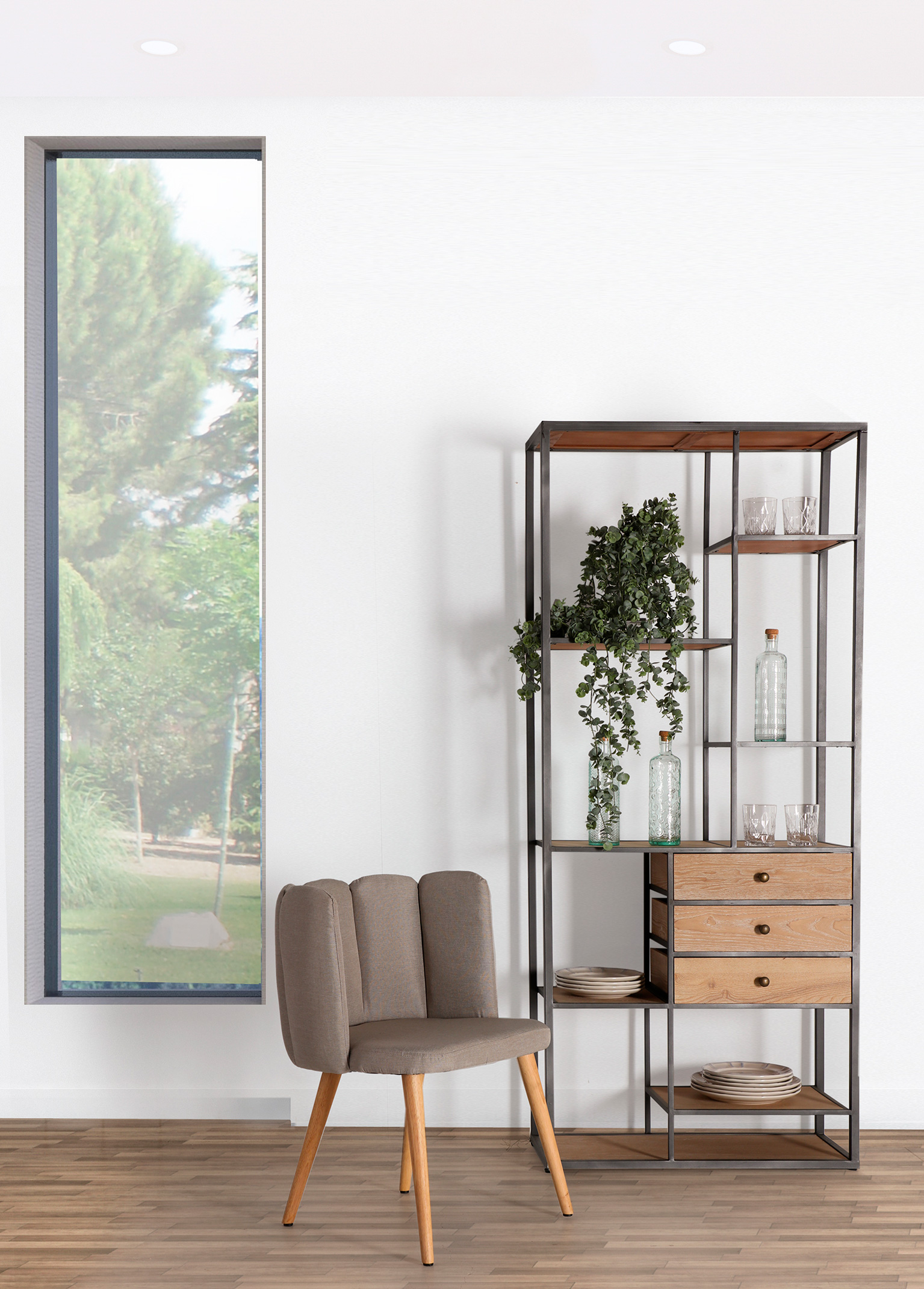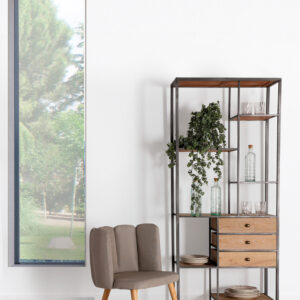 ESTANTERIA ERSA, EN COLOR NATURAL, DE ESTILO VINTAGE. FABRICADO EN HIERRO, COMBINADO CON MADERA DE ABETO.