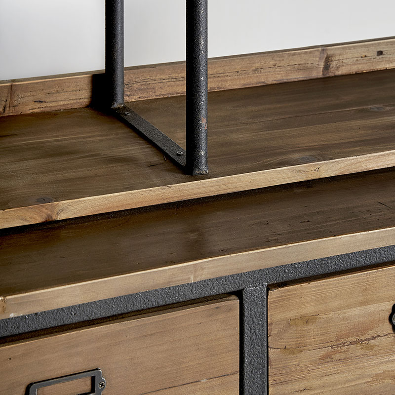 Estanteria minot de estilo industrial fabricado en madera de olmo en color marrón con acabado envejecido. Producto desmontable.