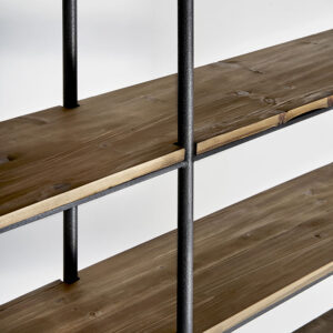Estanteria danta de estilo contemporáneo fabricado en hierro en color marrón combinado con madera de olmo en color oro. Producto desmontable.
