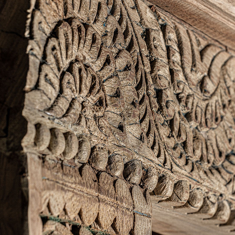 Estanteria Tedim de estilo étnico fabricado en madera de mango en color marrón con acabado envejecido combinado con madera de teka.