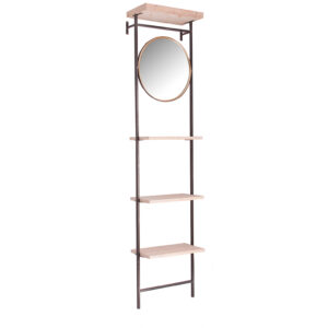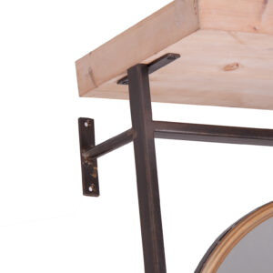 ESTANTERIA WOHLEN, EN COLOR NEGRO/ORO VIEJO, DE ESTILO INDUSTRIAL. FABRICADO EN HIERRO, COMBINADO CON MADERA DE ABETO Y ESPEJO.