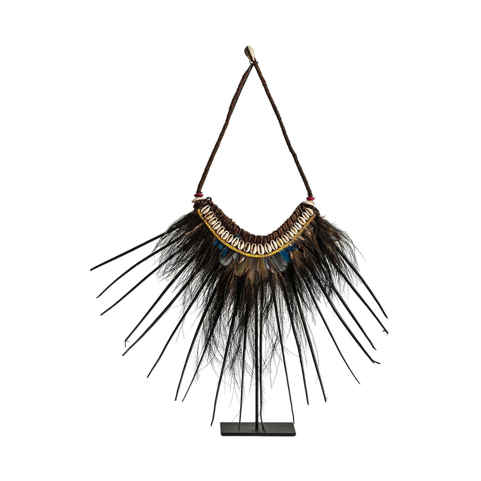 FIGURA COLLAR PLUMAS, EN COLOR NEGRO, DE ESTILO ÉTNICO. FABRICADO EN HIERRO, COMBINADO CON PLUMAS.