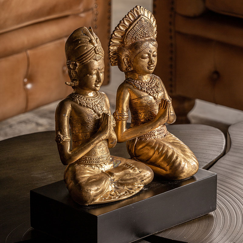 Figura decorativa, en color oro, de estilo oriental. Fabricado en bronce.