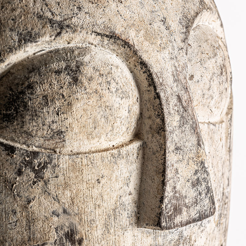 Figura decorativa barry de estilo étnico fabricado en madera tropical en color negro combinado con hierro en color natural.