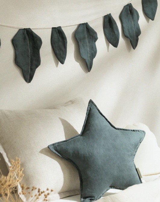 La guirnalda de hojas de Nobodinoz está hecha en 100% lino francés certificado.