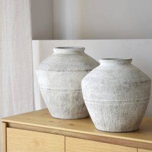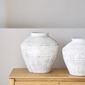 PIEZA REALIZADA EN CERÁMICA CON ACABADO RUSTICO EN TONO BLANCO ENVEJECIDO. DADO EL CARÁCTER ARTESANAL DE ESTAS PIEZAS Y LO ESPECIAL DE SU ACABADO ES POSIBLE QUE HAYA VARIACIONES DE UNAS PIEZAS A OTRAS.
