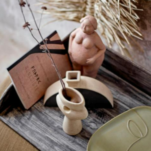 Este jarrón decorativo está hecho para destacar positivamente con su diseño fresco. La forma es nueva y refrescante respecto a la forma clásica de los jarrones y con un hueco colocado en el centro que rompe la forma y le da un toque ligero. El jarrón está hecho de terracota en una variación de color claro natural que encajará perfectamente en cualquier mesa, tocador, estante, alféizar de ventana, etc.