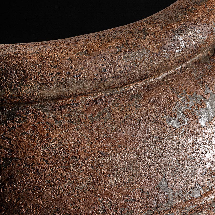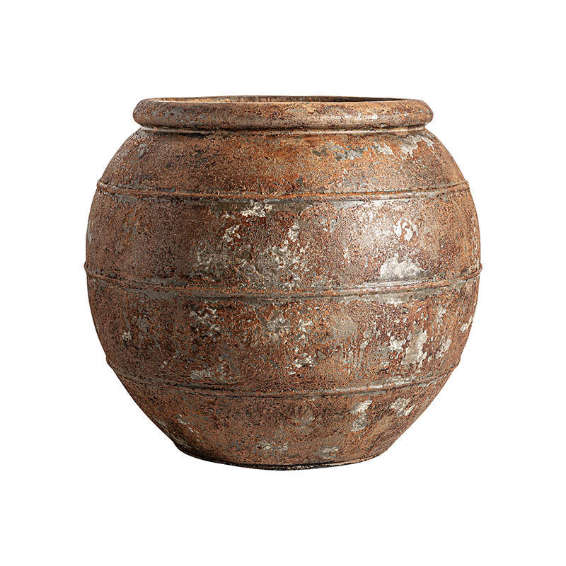 Jarrón roger de estilo vintage fabricado en cerámica en color marrón con acabado envejecido.