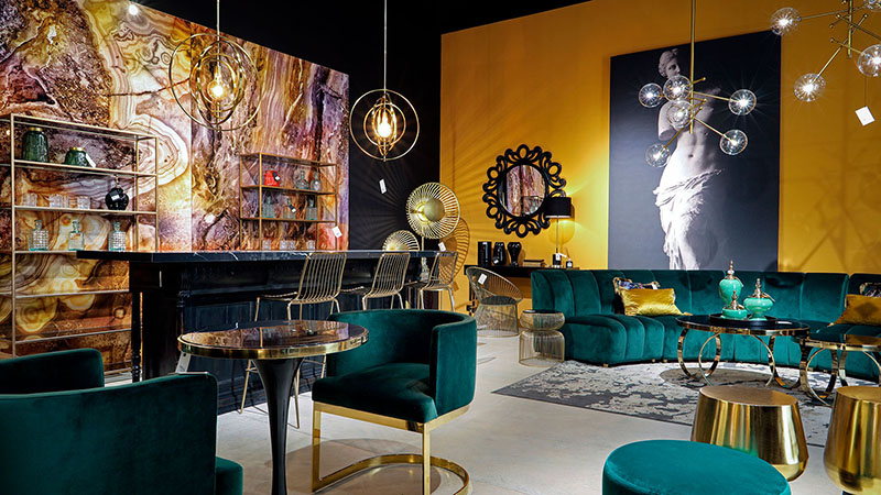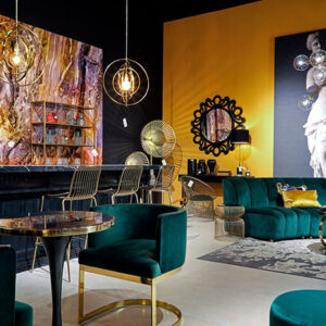 Lámina Armagh de estilo art deco fabricado en metacrilato en color ambar con acabado impreso.