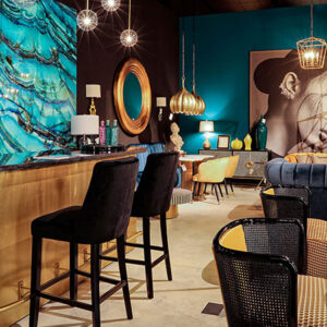 Lámina Nauru de estilo art deco fabricado en metacrilato en color turquesa con acabado impreso.