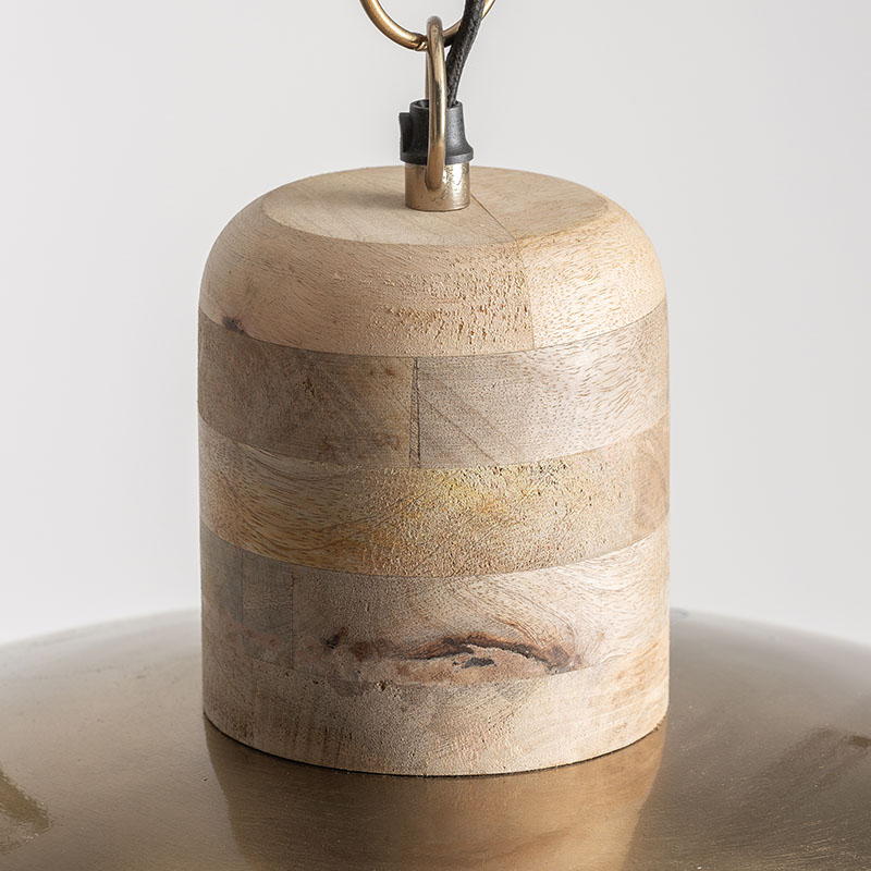 Lámpara de colgar de estilo art deco fabricado en hierro en color oro combinado con madera de mango.