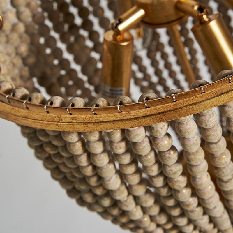 Lámpara de colgar de estilo provenzal fabricado en hierro en color crema combinado con madera en color oro. Producto desmontable.