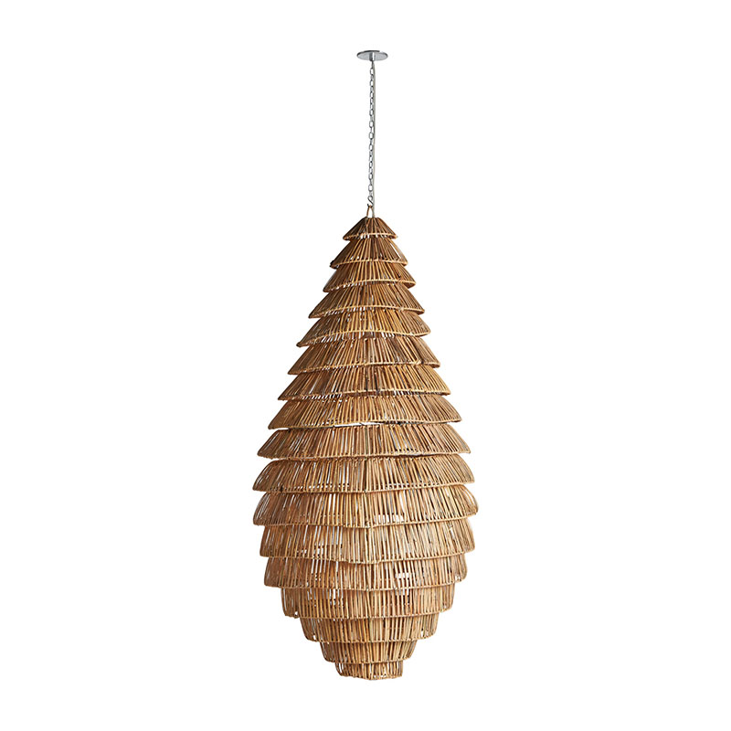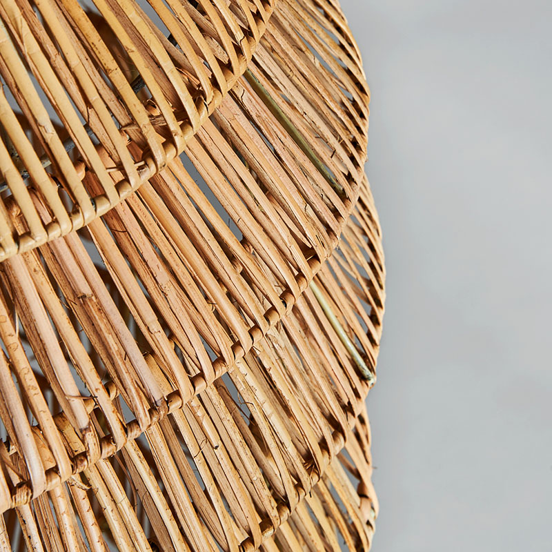 Lámpara de colgar de estilo étnico fabricado en ratán en color marrón combinado con hierro.